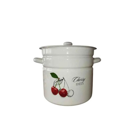 Каструля Idilia 12 л — надійний емальований посуд великого об'єму, циліндричної форми для консервування та варіння. Сумісна з індукцією. Класичний дизайн "Вишня". Продаж оптом.